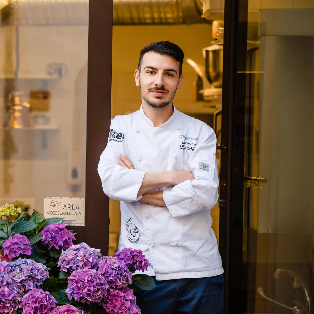 Classe 1994, Lorenzo Neri è un pisano DOC, originario di Guardistallo. Fin da piccolo, dall’età di 6-7 anni, si innamora della cucina, grazie alla mamma – “mi mettevo con uno sgabello vicino a lei e la guardavo cucinare” – e alla nonna paterna abruzzese naturalizzata toscana, autrice di una cucina genuina a base di prodotti dell’orto e selvaggina. Quando arriva il momento di iscriversi alle Scuole Superiori, le memorie di bambino si fanno largo, così Lorenzo inizia il suo percorso didattico all’Istituto Alberghiero a Rosignano, e chiuderà con il Diploma di Cuoco Professionista conseguito all’ALMA di Colorno (PR). Qui scopre l’esistenza di un mondo parallelo a quello che aveva fino a quel momento conosciuto, quello dell’alta cucina, che diventerà in breve tempo la sua strada.