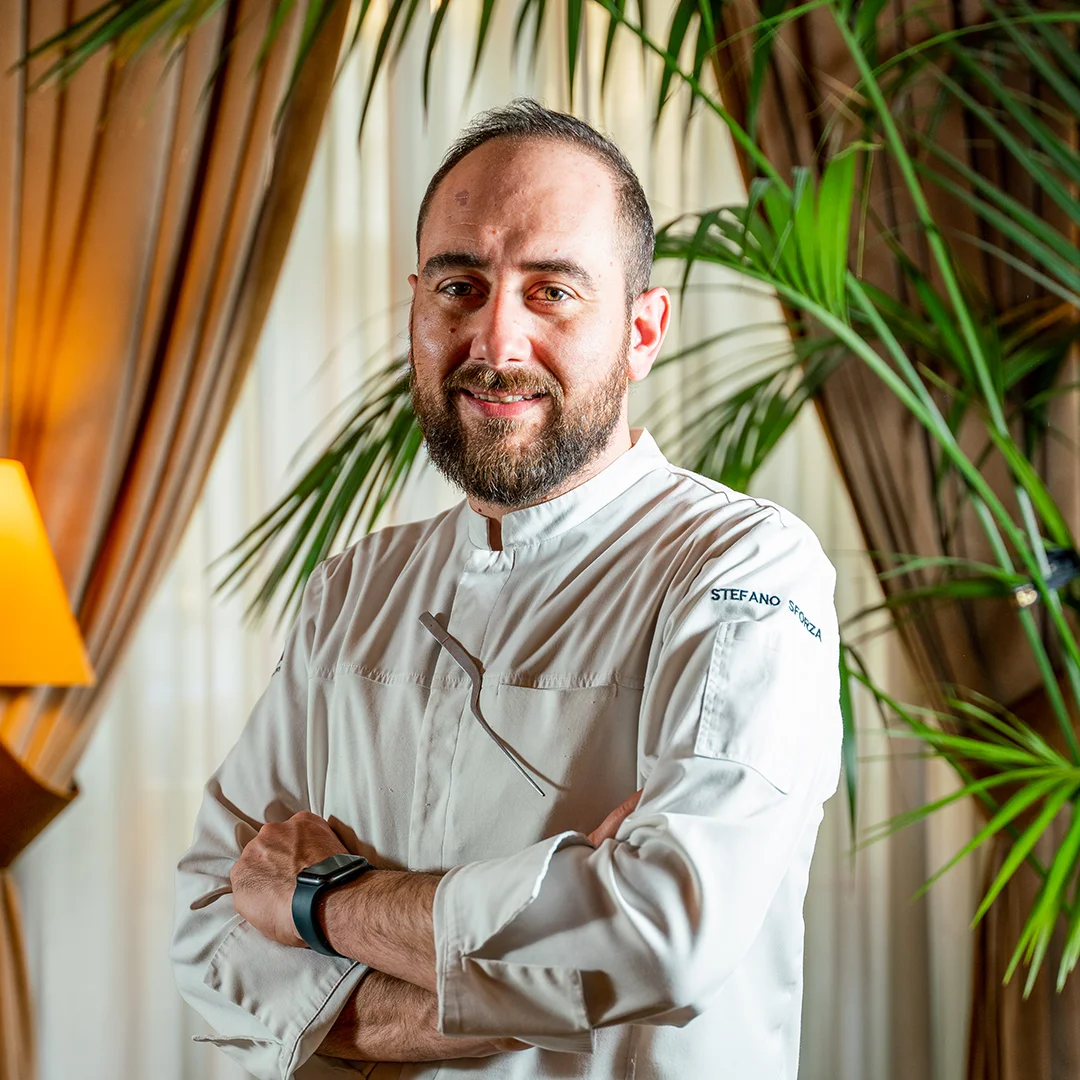 Lo chef, classe 1986, propone una cucina netta, precisa nel sapore e ben delineata nei gusti. Una scelta fatta di territorialità, di innovazione e di concretezza, con un menù che cambia seguendo la stagionalità dei prodotti. Dai suoi maestri, da Pier Bussetti ad Alain Ducasse, ha imparato il rigore, il rispetto e la disciplina, prima ancora di cucinare. Dopo più di 15 anni di esperienze, dopo Bellevue di Cogne, Del Cambio di Torino, Trussardi alla Scala di Milano, sposa il progetto della famiglia Cometto e approda al Ristorante Opera in qualità di Executive Chef. Oltre alla proposta alla carta, due menu, di cui uno vegetariano costruito intorno a una famiglia di vegetali, dove Sforza esprime la sua predilezione per le verdure e gioca con le cotture e le consistenze, e un menù “Opera” in cui farsi guidare dallo chef attraverso un percorso creativo che lascia libero sfogo al suo estro e che esprime tutta l’essenza del ristorante. Stefano Sforza è stato insignito del premio Chef Emergente dell’Anno agli Awards 2020 di Food and Travel Italia. L’anno successivo il ristorante ottiene il premio di TheFork e Identità Golose People Choice’s Award ritirato in occasione dei TheFork Restaurants Awards 2021. Da aprile 2022 Opera è nella selezione della Guida Michelin.