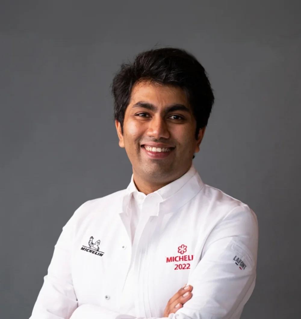Himanshu Saini, nato a New Delhi, è una delle grandi personalità della cucina contemporanea. Dopo gli studi presso il Banarsidas Chandiwala Institute, ha affinato il suo talento nei migliori ristoranti di Delhi, perfezionandosi sotto la guida di Manish Mehrotra presso il rinomato Indian Accent. Il suo trasferimento negli Emirati Arabi Uniti ha segnato una svolta nella sua carriera, con l’apertura di ristoranti iconici come Masala Library e Farzi Cafe. Tuttavia, è con Trèsind e Trèsind Studio che Saini ha rivoluzionato la cucina indiana a Dubai, guadagnando due stelle Michelin oltre ad essere 13° tra i 50 migliori ristoranti al mondo.