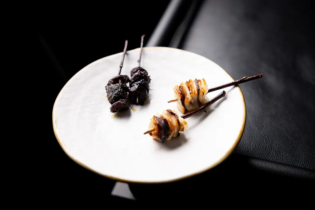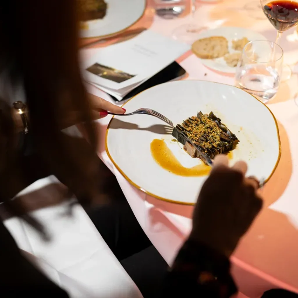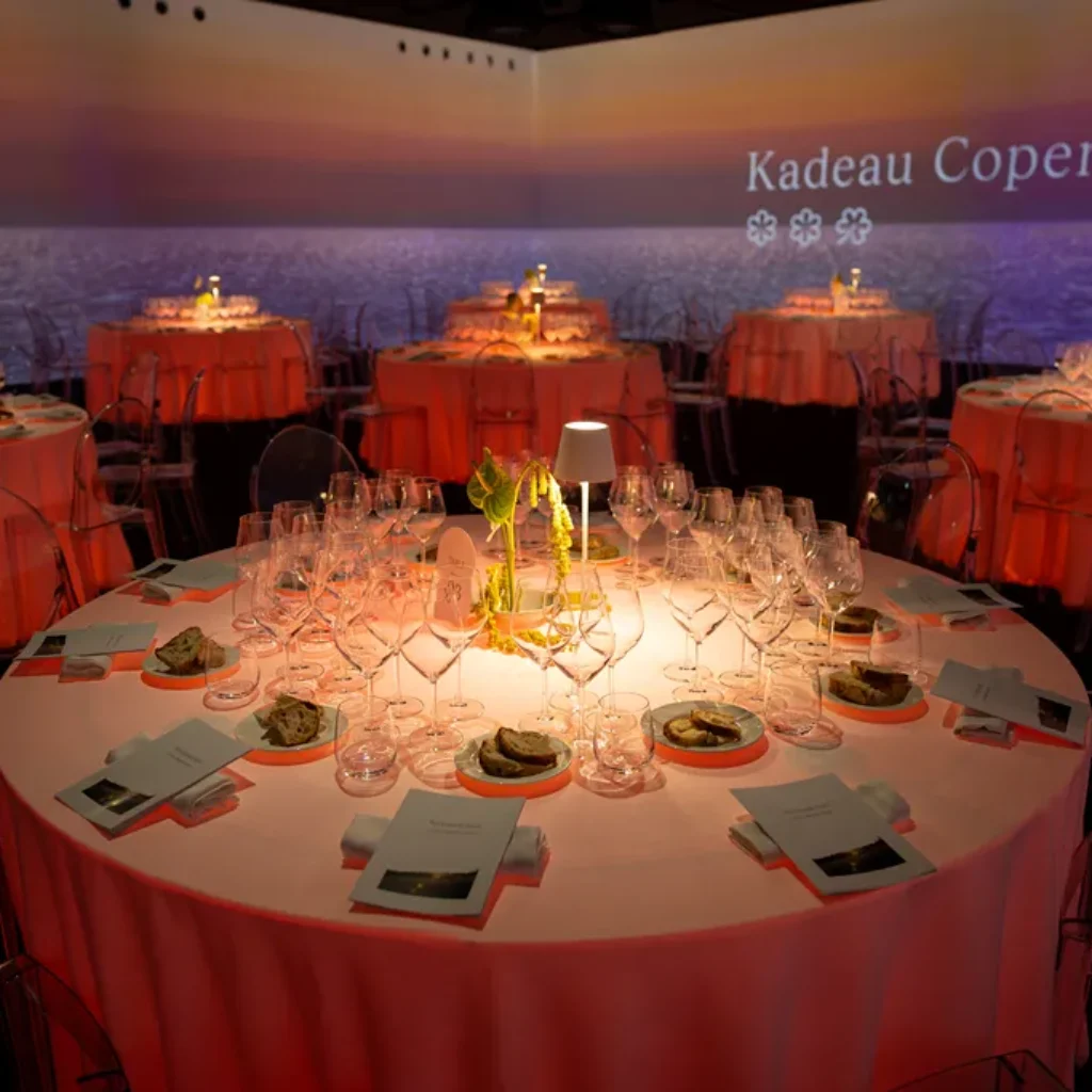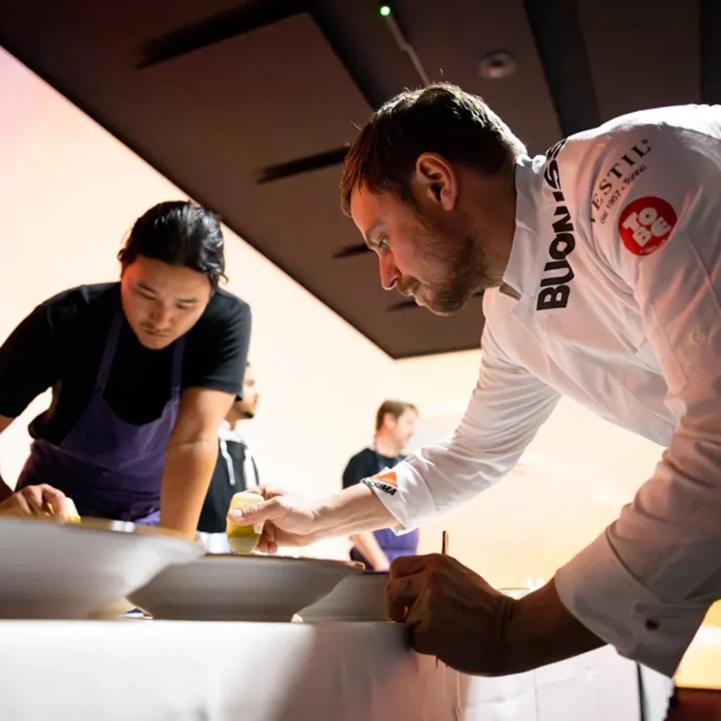 In questo spettacolare contesto, verranno serviti gli iconici “signature dish” che hanno reso Kadeau celebre a livello mondiale. Il menù prevede 8 portate d’autore, accompagnate da una selezione di grandi vini, dalle bollicine Alta Langa fino al Barolo.